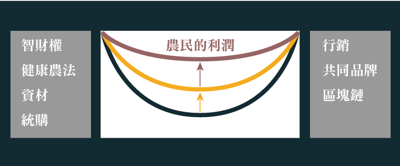 如上的運作若可行,就掌握了微笑的兩端,生產與行銷,也就能成就健康農法的目標,一安二讚大家賺(生產者與消費者)。